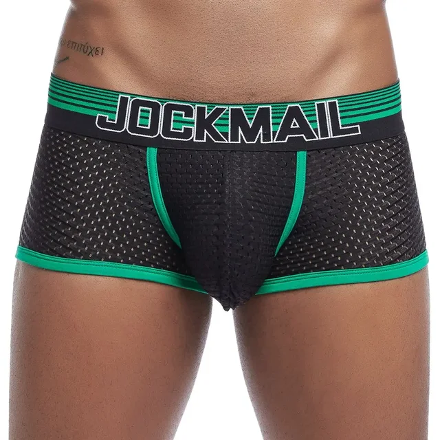 Męskie siateczkowe bokserki JOCKMAIL - czarne z zielonymi wykończeniami