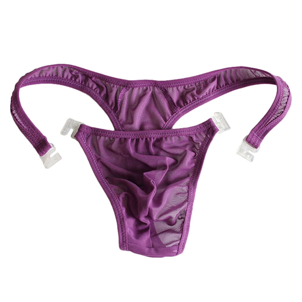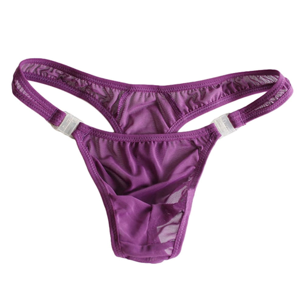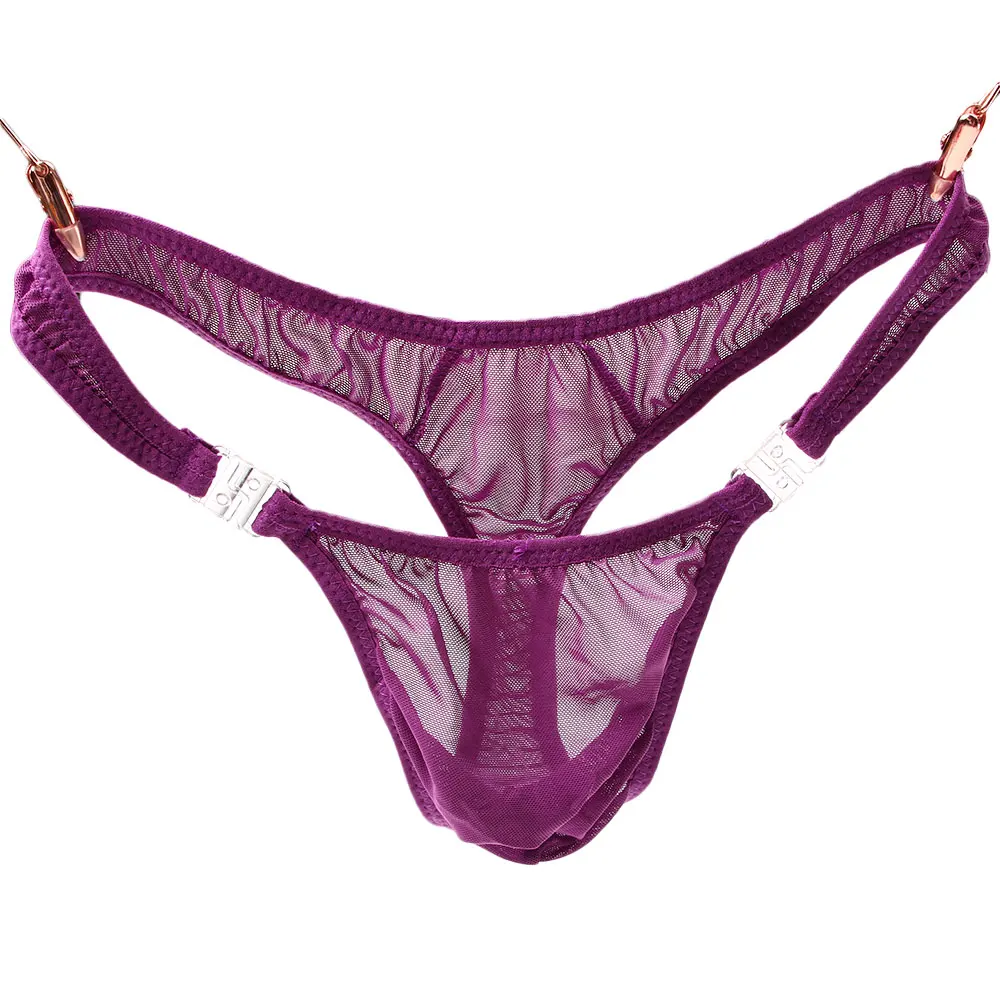 Męskie siateczkowe stringi z odpinanym przodem - fioletowe