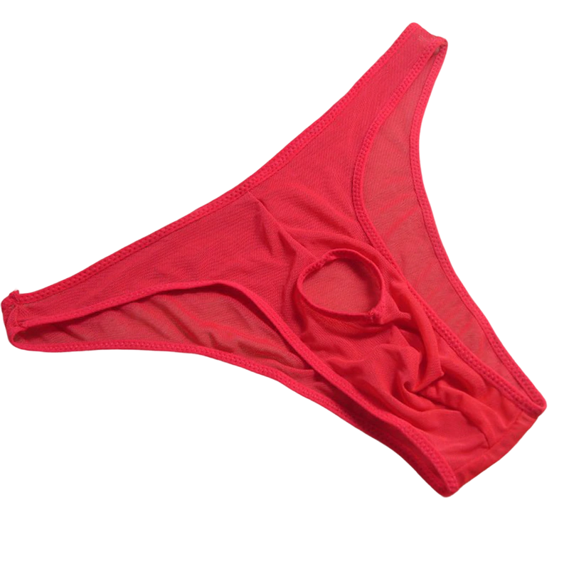 Męskie slipy, prześwitujące, z otworem