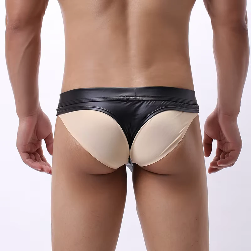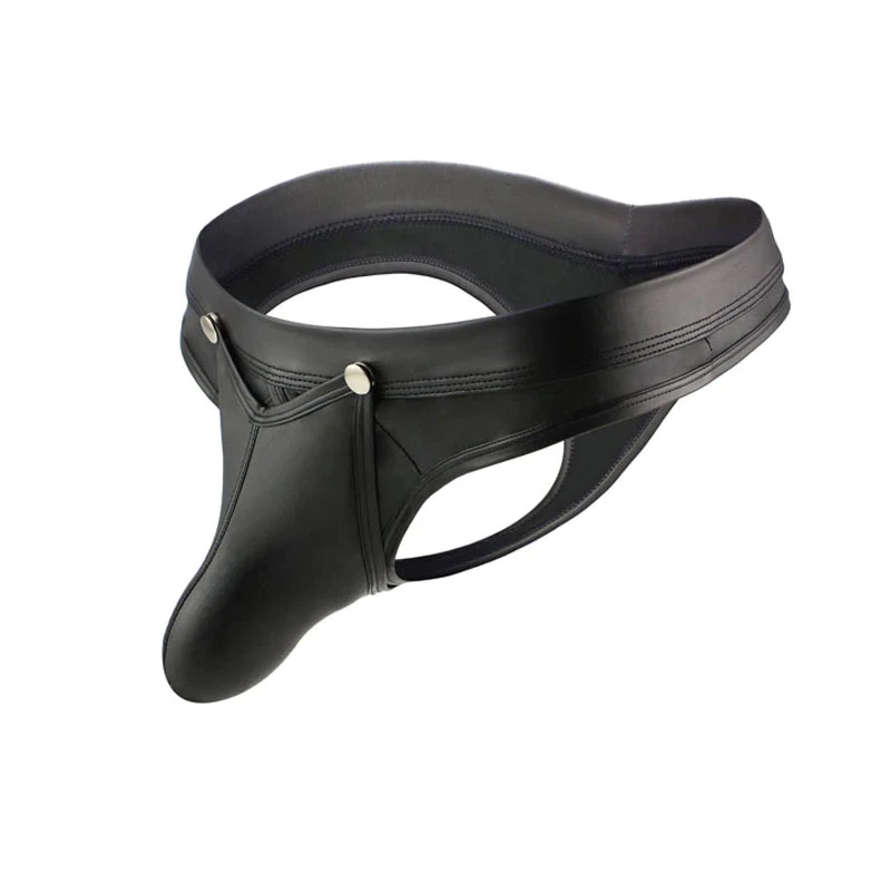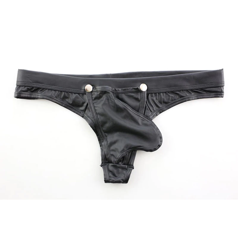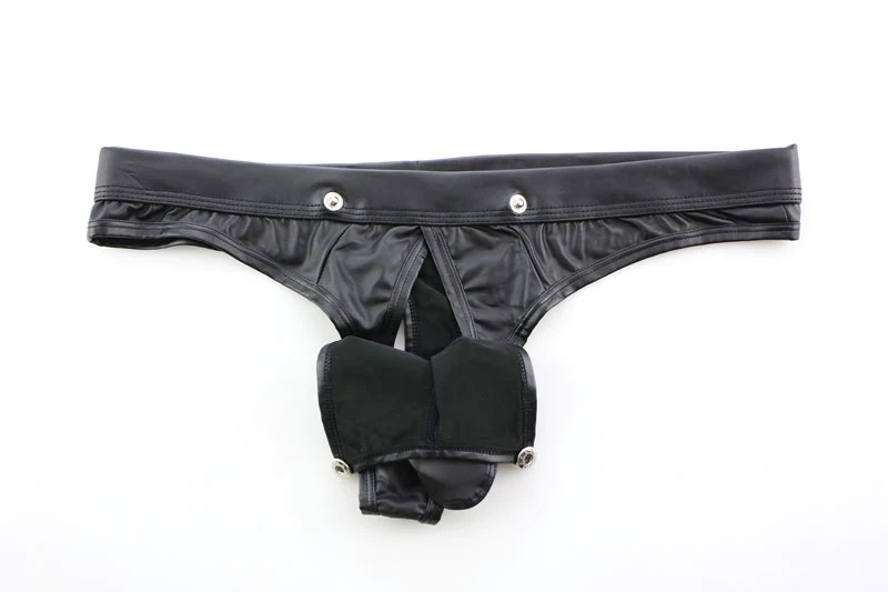 Męskie stringi, ekoskóra, nity, push-up