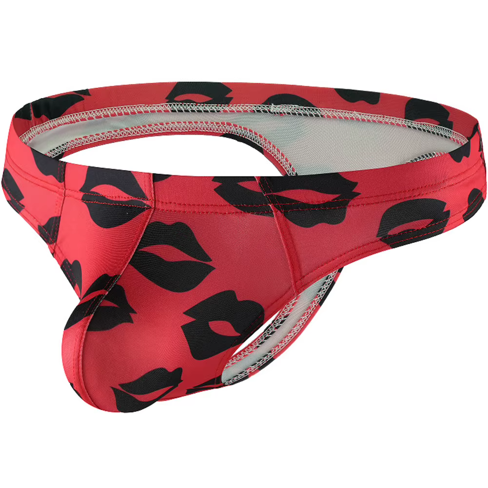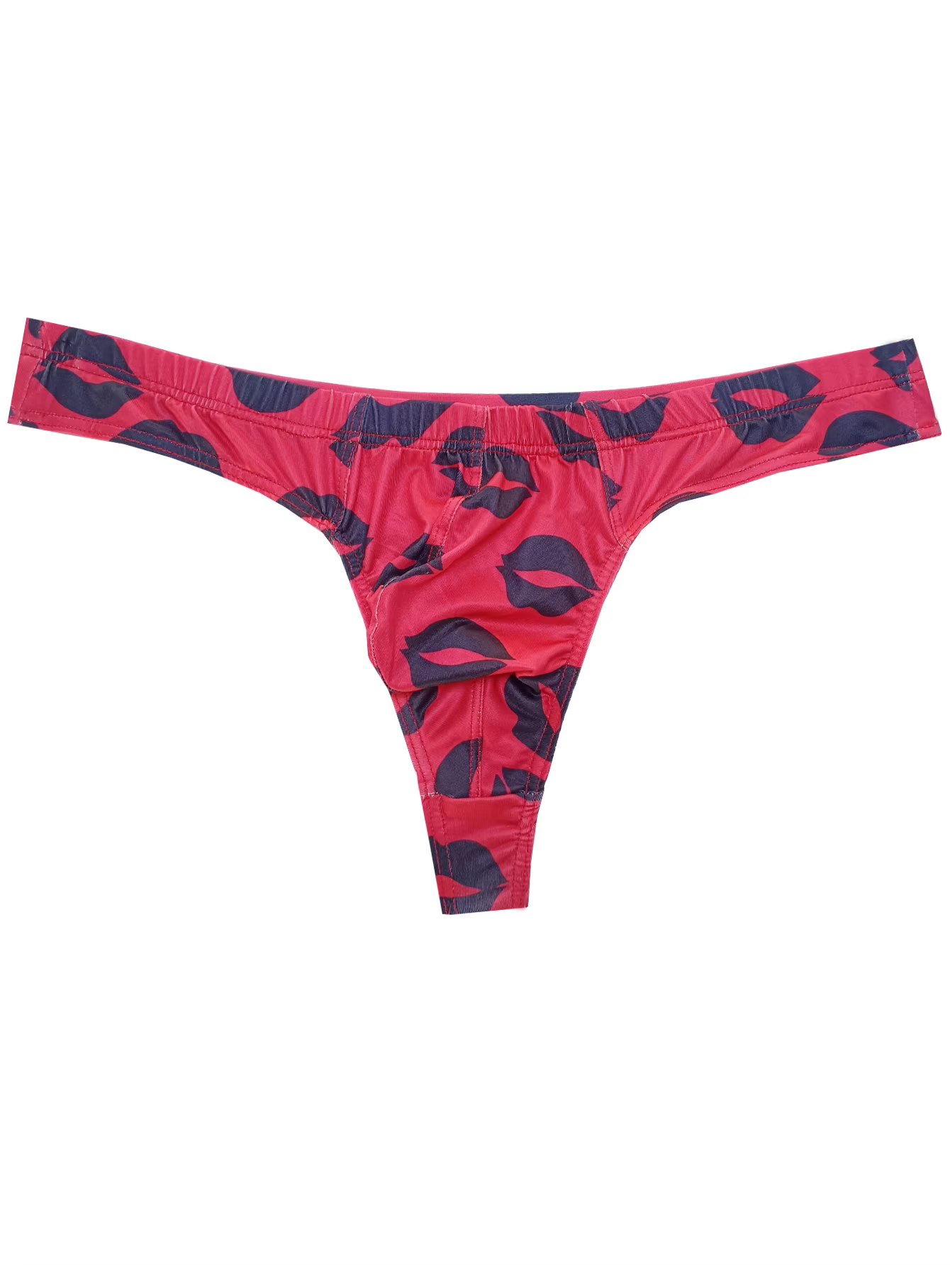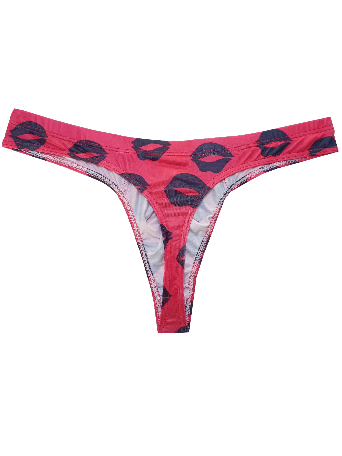 Męskie stringi, z elastycznego materiału. Wyrazisty kolor i nadruk z motywem ust.