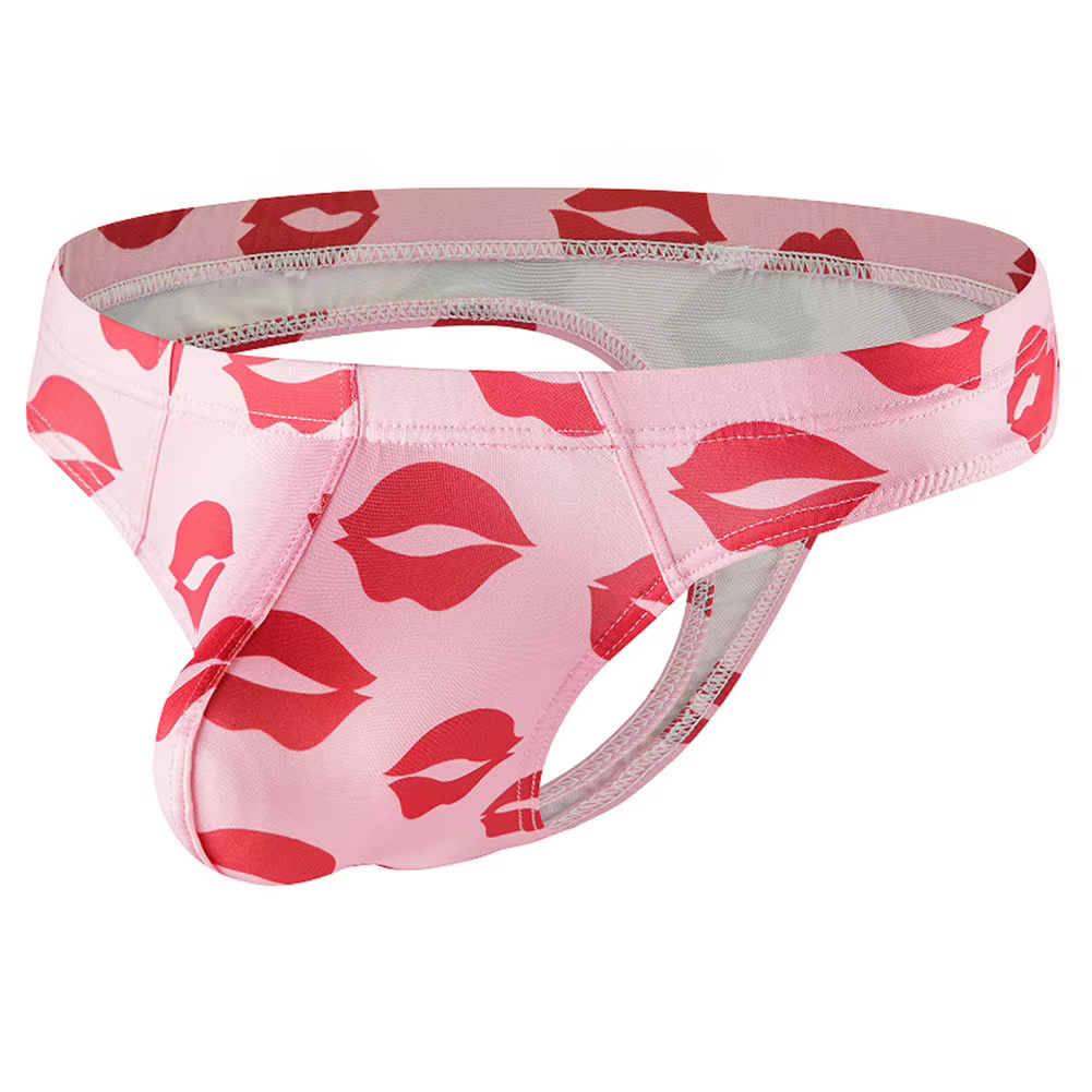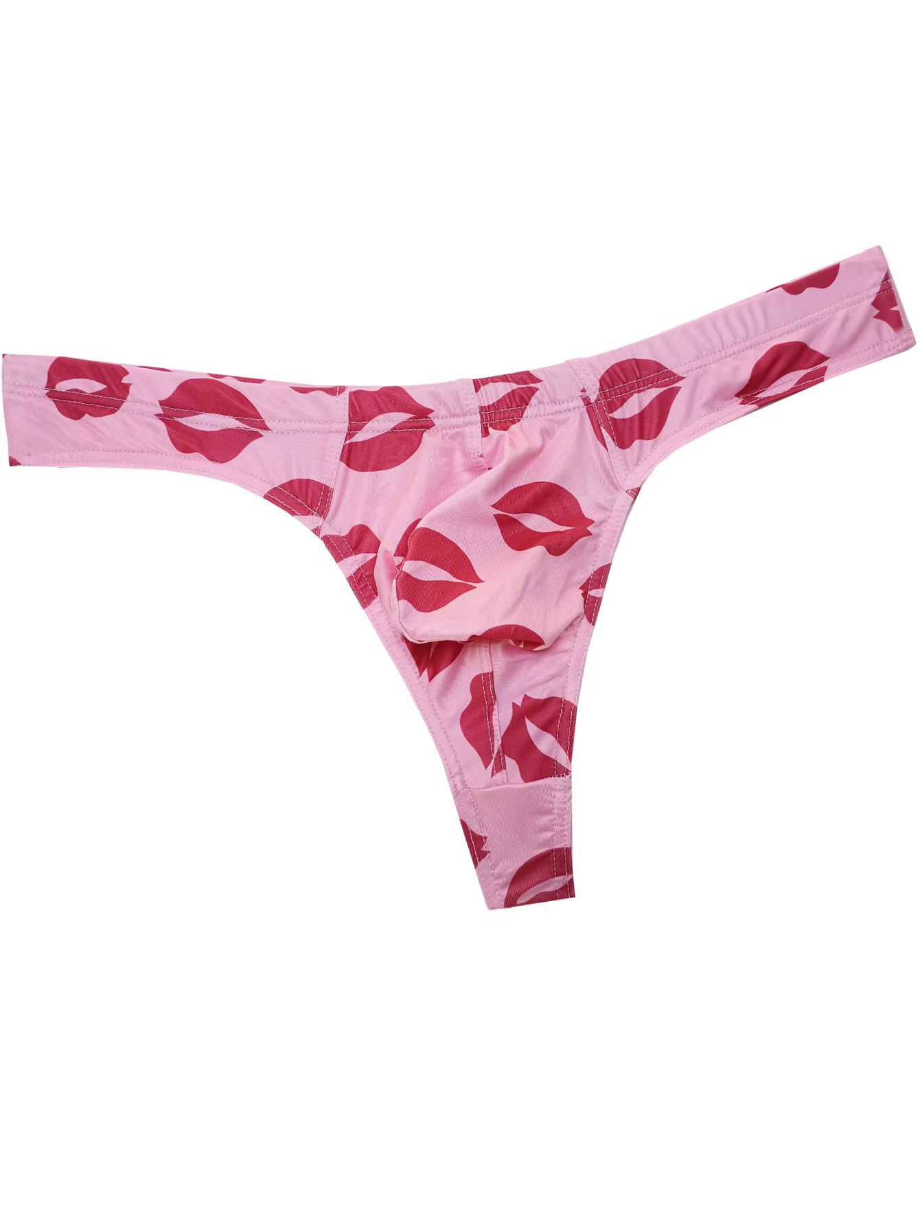 Męskie stringi, z elastycznego materiału. Wyrazisty kolor i nadruk z motywem ust.