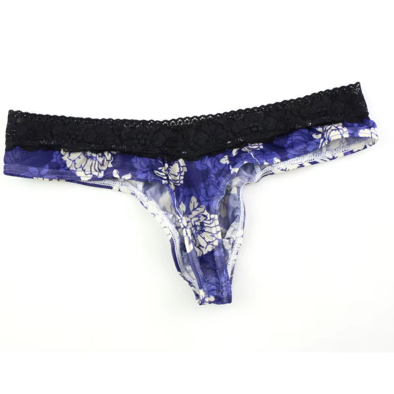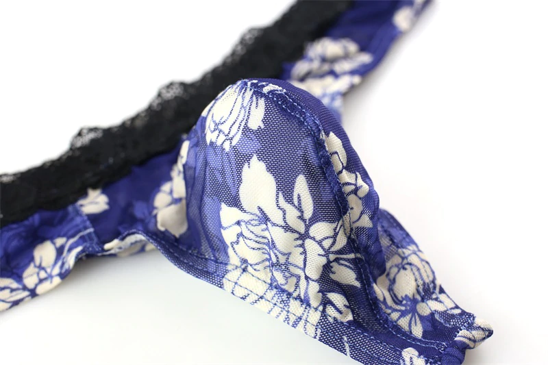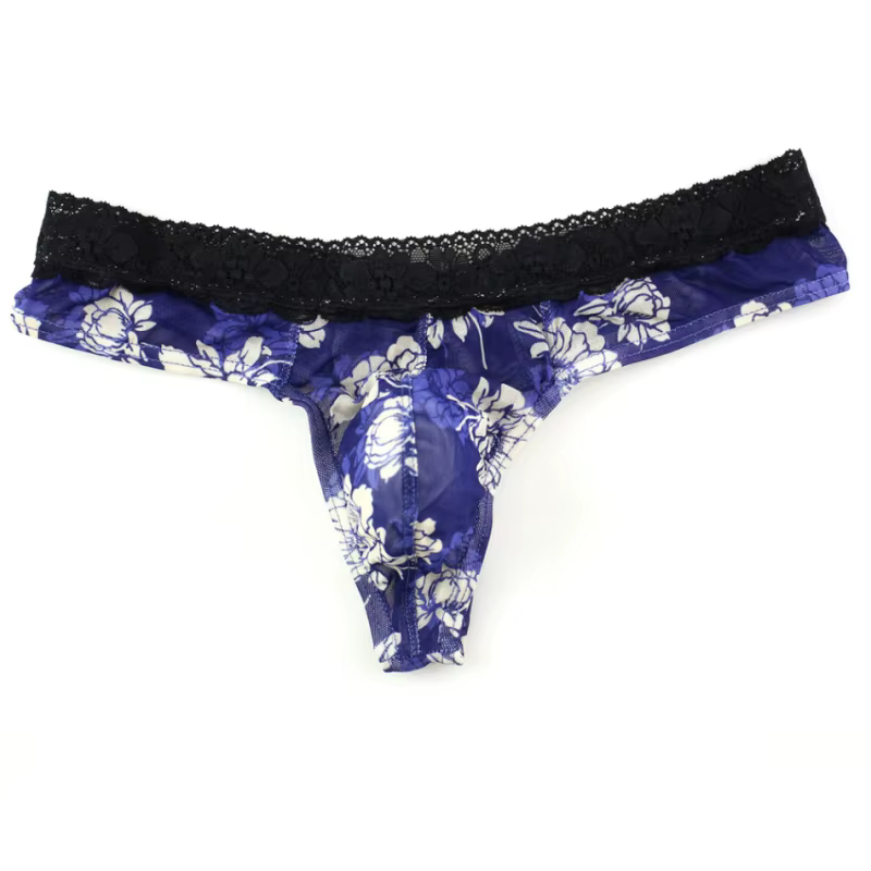 Męskie stringi, przezroczyste, koronkowe, w kwiaty
