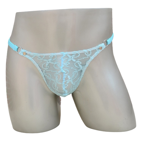 Męskie stringi koronkowe - błękitne