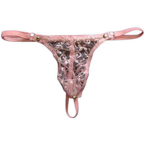 Męskie stringi koronkowe - jasno różowe