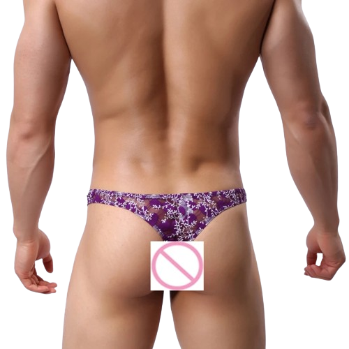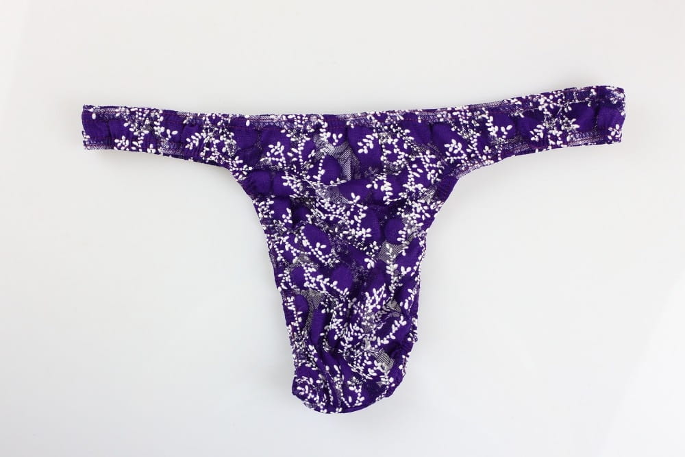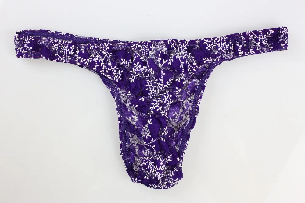 Męskie stringi koronkowe z kwiecistym wzorem – fioletowe