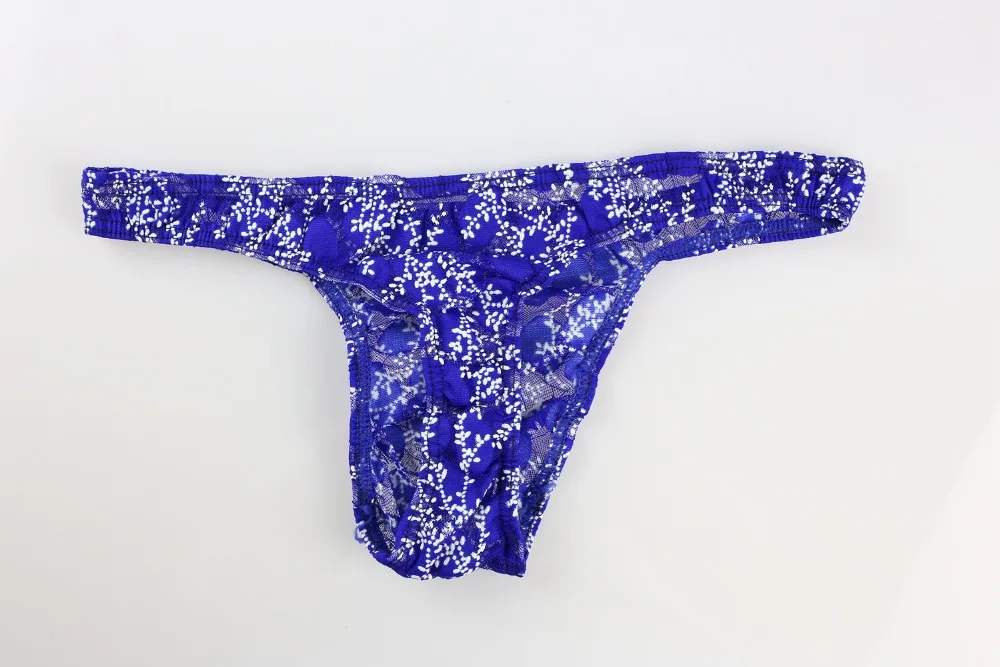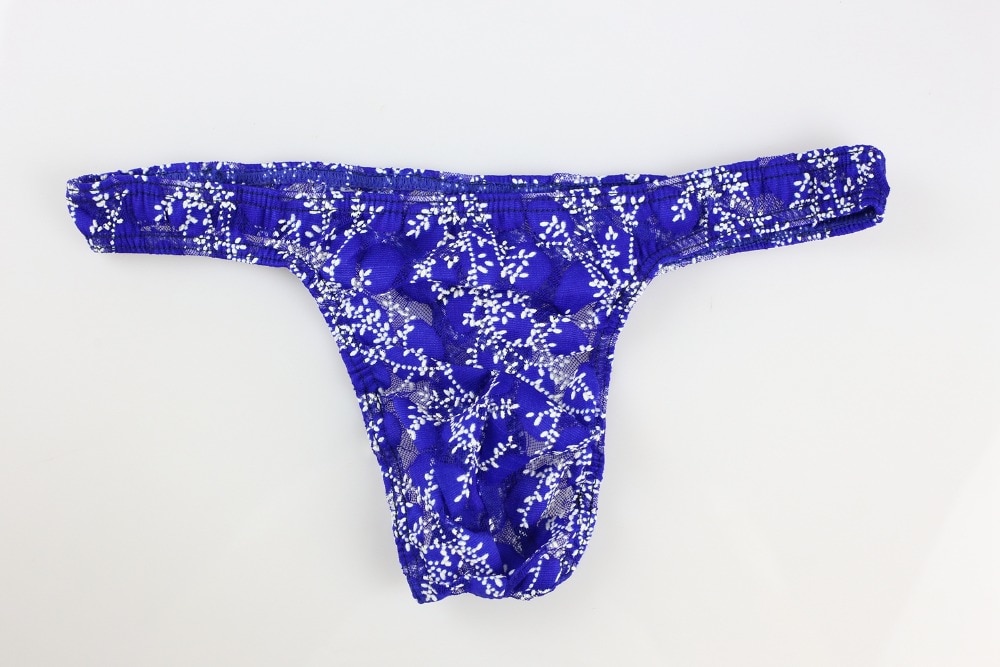 Męskie stringi koronkowe z kwiecistym wzorem – niebieskie