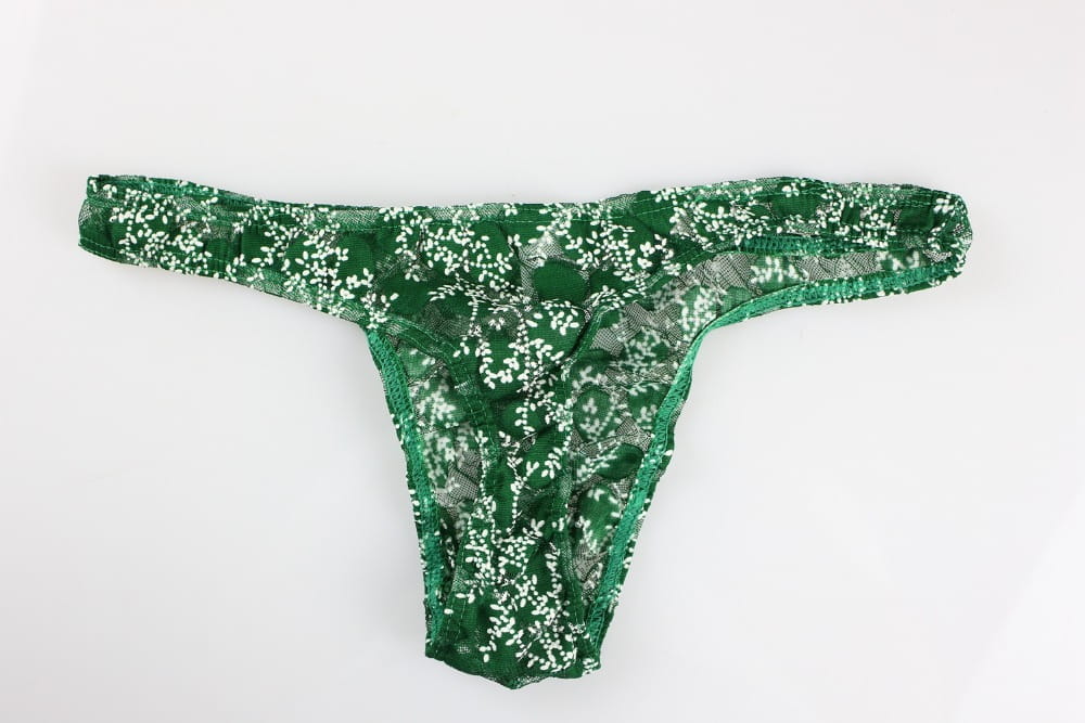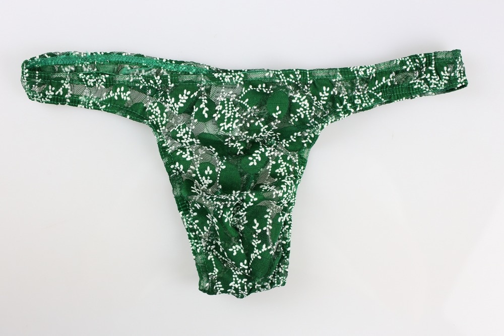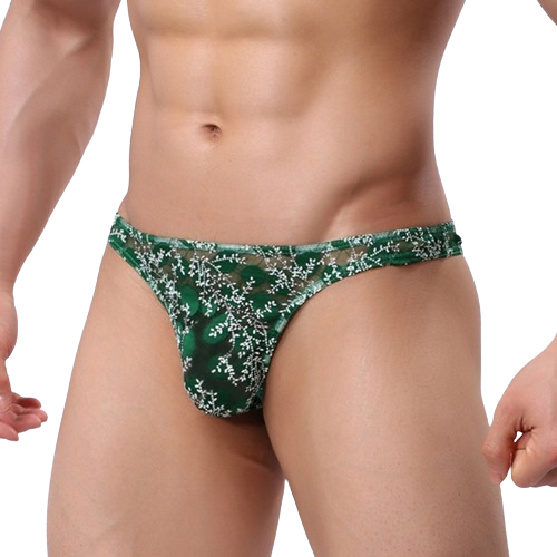 Męskie stringi koronkowe z kwiecistym wzorem – zielone