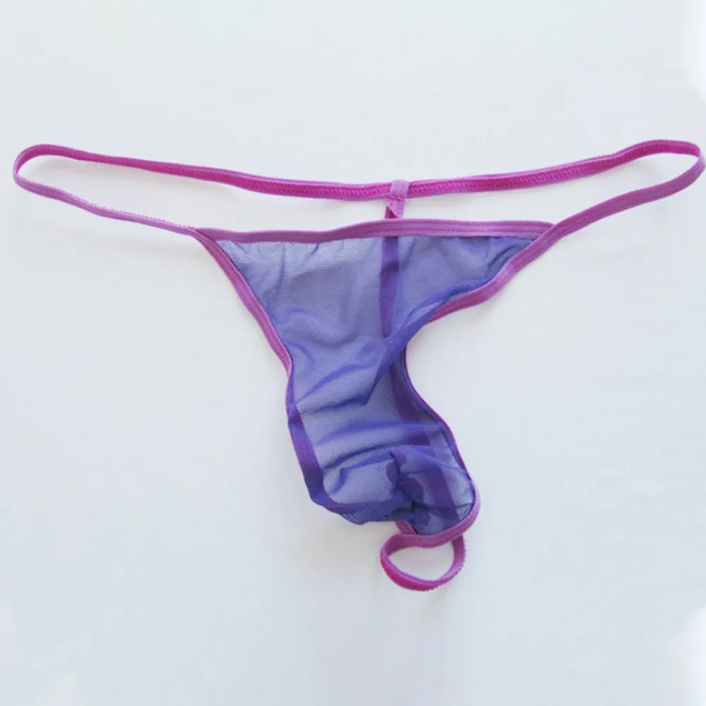 Męskie stringi przezroczyste – minimalistyczne, fioletowe