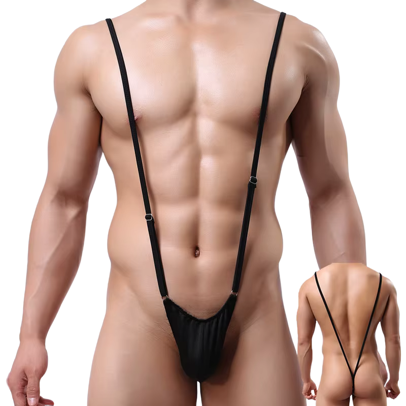 Męskie majtki stringi, w postaci mocno wyciętego body. Doskonały wybór dla pomysłowych i odważnych.