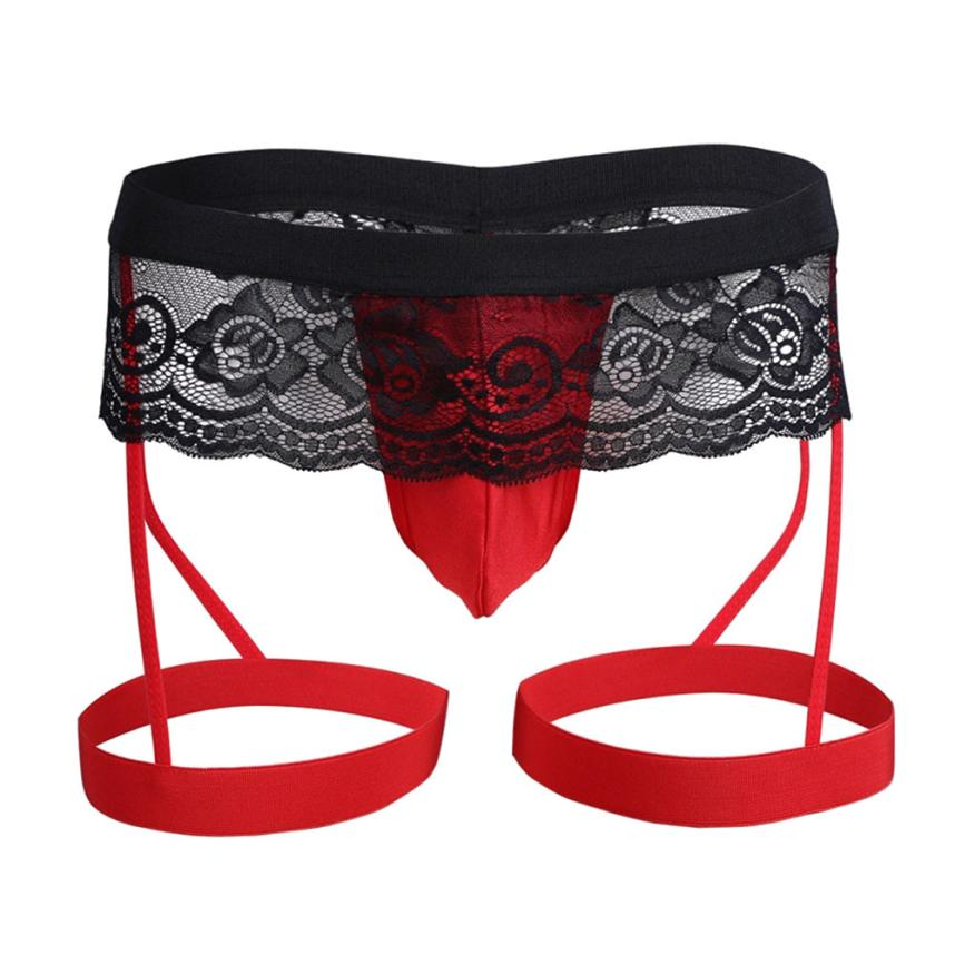 Męskie stringi z pasem do pończoch, koronka