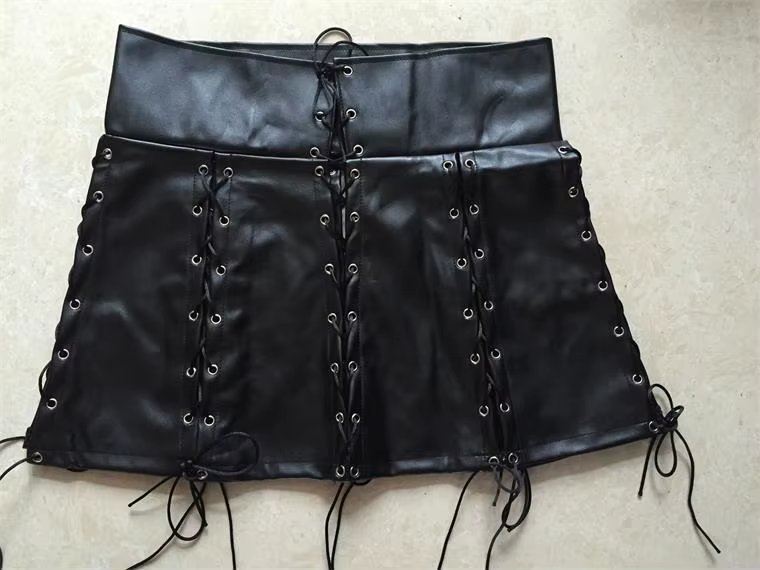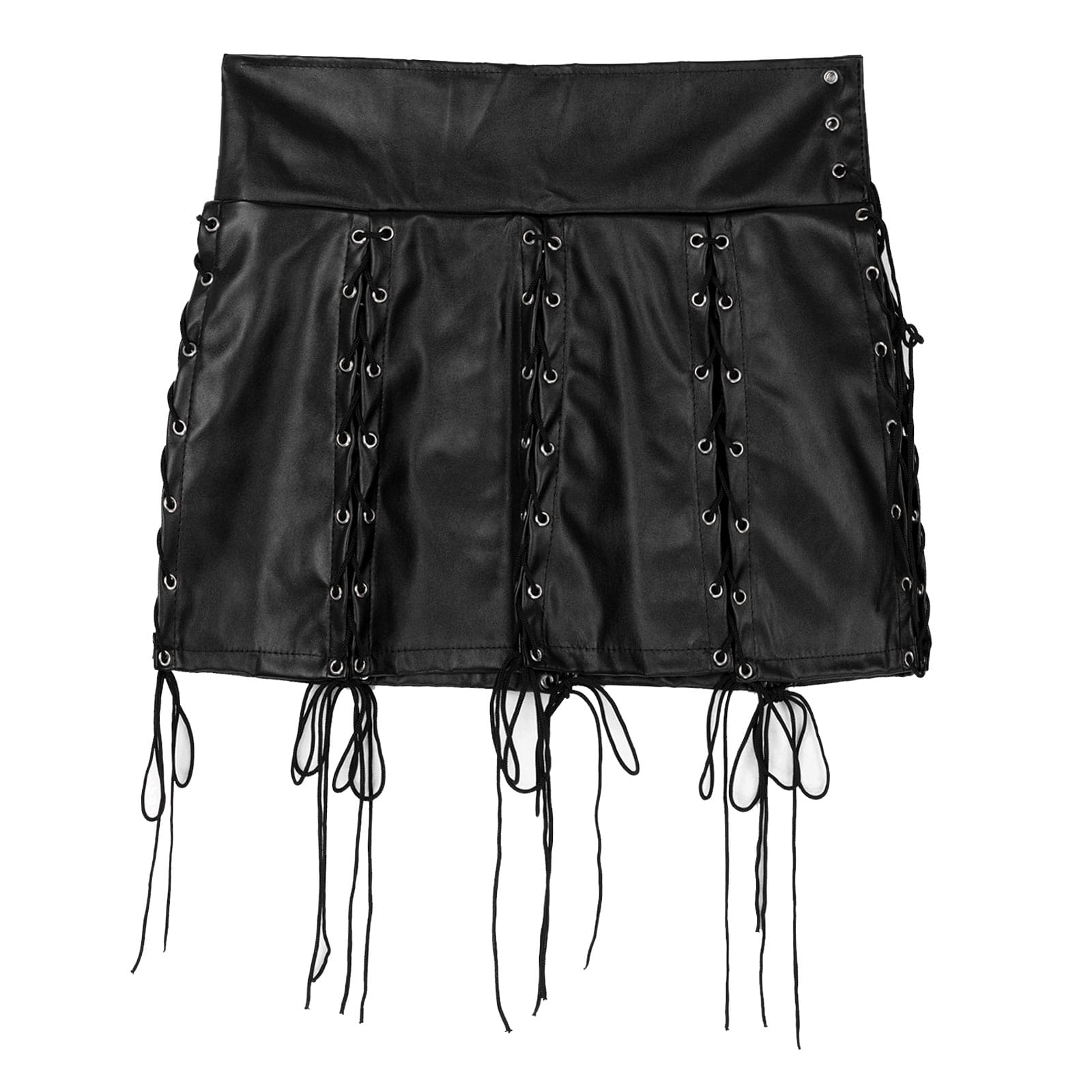Minispódniczka ze skóry ekologicznej ma liczne wiązania. Sznurowania nadają drapieżności i pewności siebie, dzięki czemu jest to doskonały wybór dla odważnych kobiet.