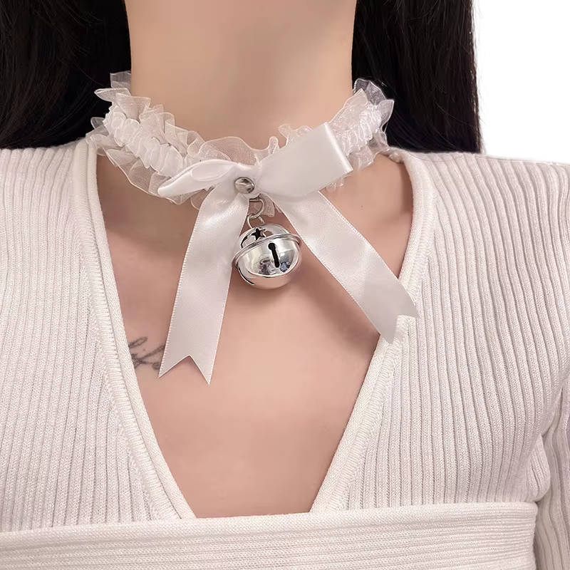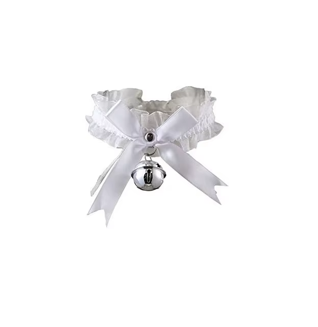 Delikatna i urocza obroża typu choker, która zrobiona jest z delikatnego materiału. Ma kokardkę i dzwoneczek.