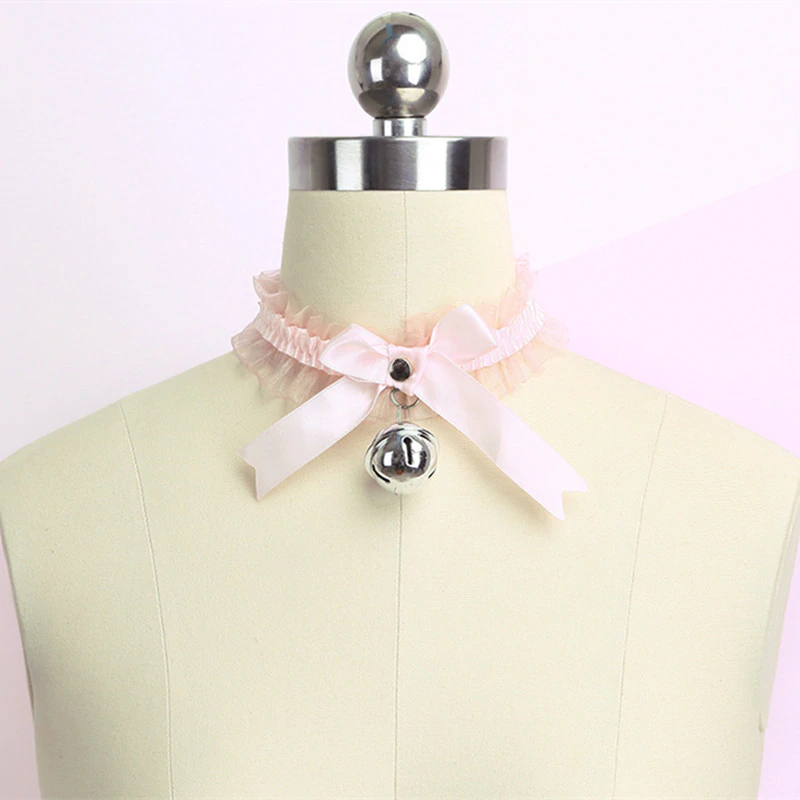 Delikatna i urocza obroża typu choker, która zrobiona jest z delikatnego materiału. Ma kokardkę i dzwoneczek.