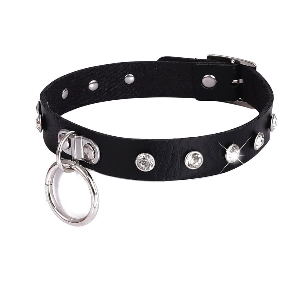 Obroża typu choker, z kółkiem i cyrkoniami