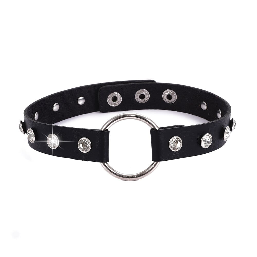 Obroża typu choker, z kółkiem i cyrkoniami
