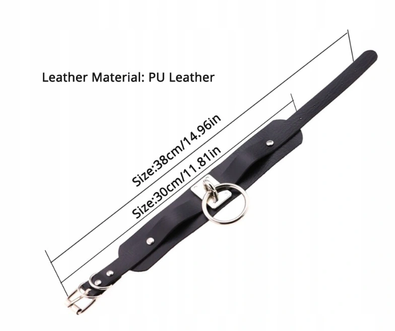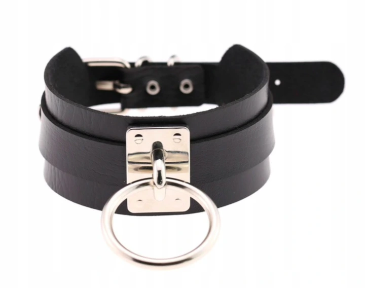 Obroża typu choker, z metalowym kółkiem, BDSMSkórzana obroża z ozdobnym metalowym kółkiem to propozycja idealna dla osób, które lubią odważne akcenty i chcą wyróżniać się unikalnym designem. Niezależnie od tego, czy nosisz ją jako modny gadżet – z pewnością przyciągnie uwagę i doda pewności siebie. Jest to akcesorium, które świetnie sprawdzi się zarówno jako uzupełnienie stylizacji na co dzień, ale też jako element do sesji zdjęciowej czy imprezy. Dlaczego warto kupić?
