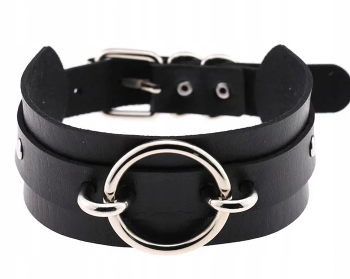 Obroża typu choker, z metalowym kółkiem, BDSMSkórzana obroża z ozdobnym metalowym kółkiem to propozycja idealna dla osób, które lubią odważne akcenty i chcą wyróżniać się unikalnym designem. Niezależnie od tego, czy nosisz ją jako modny gadżet – z pewnością przyciągnie uwagę i doda pewności siebie. Jest to akcesorium, które świetnie sprawdzi się zarówno jako uzupełnienie stylizacji na co dzień, ale też jako element do sesji zdjęciowej czy imprezy. Metalowe kółko ciasno przytwierdzone jest dodatkowymi półkółkami. Dlaczego warto kupić?
