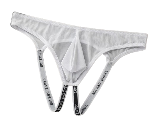 Męskie slipy z przeźroczystej siateczki w stylu jockstrap to nietypowe połączenie lekkości z oryginalnym designem. Wykonane z wysokiej jakości siateczki z charakterystycznymi paskami, zapewniają komfort i wyjątkowy wygląd. Biały kolor i przezroczysta struktura sprawiają, że ta bielizna wyróżnia się nowoczesnym charakterem. Specjalny krój został zaprojektowany z myślą o mężczyznach ceniących niekonwencjonalne rozwiązania stylistyczne.