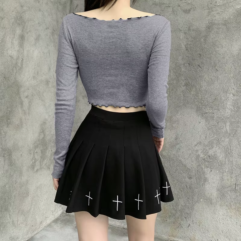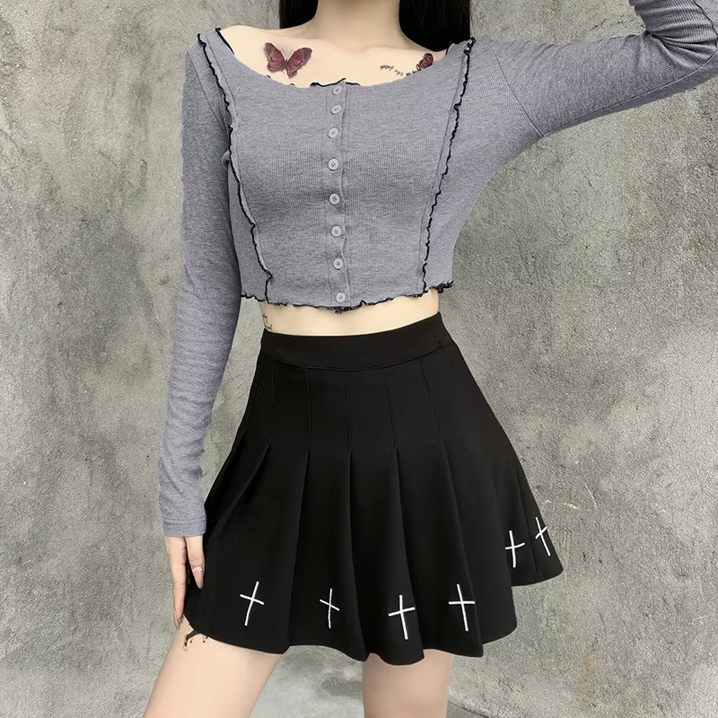 Plisowana spódniczka, wysoki stan, haft - czarnaSzukasz modnego i odważnego elementu do swojej garderoby? Nasza spódniczka goth z subtelnym haftem krzyży to doskonały wybór na każdą okazję. Idealna na koncerty, festiwale, czy spotkania z przyjaciółmi. Dzięki połączeniu klasycznego kroju z unikalnymi detalami, ta spódniczka zapewni Ci oryginalny wygląd, który przyciągnie uwagę. | ![]() |
