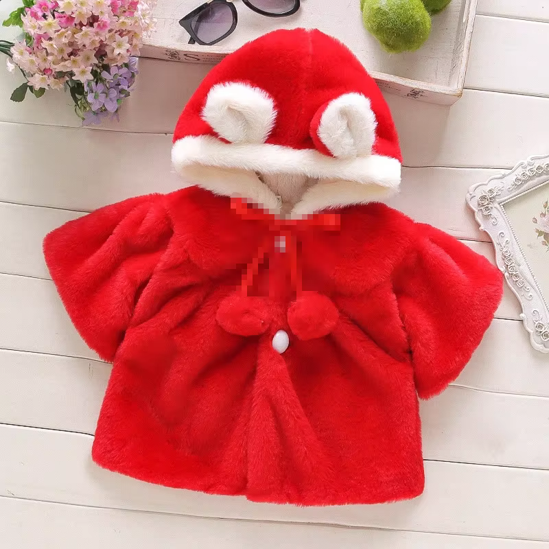Pluszowa kurtka z uszami, dla dziewczynki - czerwona