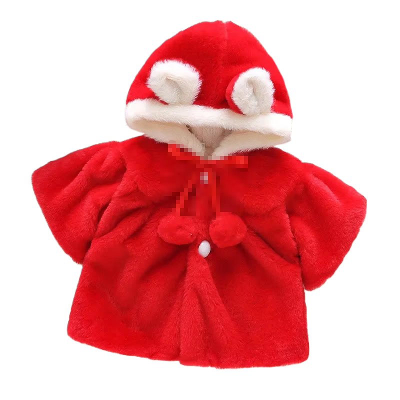 Pluszowa kurtka z uszami, dla dziewczynki - czerwonaUrocza pluszowa kurtka dla dziewczynki to idealny wybór na chłodniejsze dni. Wykonana z miękkiego i przyjemnego w dotyku materiału, zapewnia ciepło i wygodę. Kaptur ozdobiony uroczymi uszami oraz ozdobne pompony dodają jej wyjątkowego, bajkowego charakteru. Kurtka doskonale wpisuje się w dziecięcy, delikatny styl. Jest to praktyczna i stylowa propozycja na spacery, sesje zdjęciowe czy wyjątkowe okazje. Zalety produktu