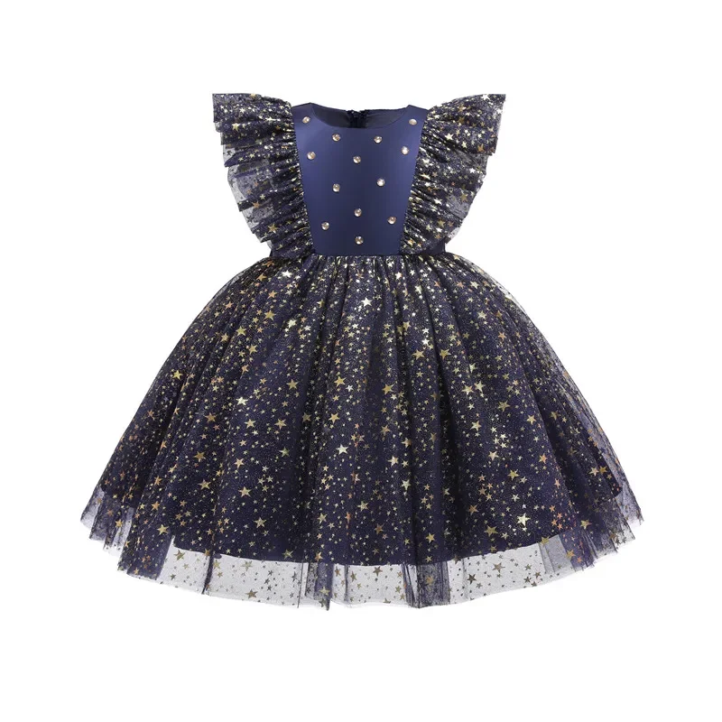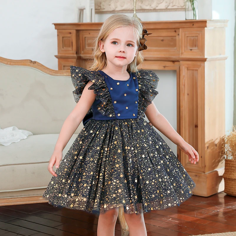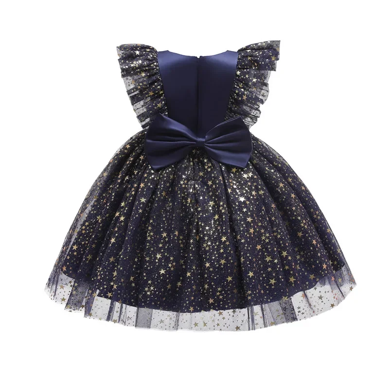 Ta wyjątkowa sukienka w gwiazdki to idealna propozycja dla małych elegantek. Połączenie klasycznej elegancji z magicznym urokiem nocnego nieba sprawia, że każda dziewczynka poczuje się wyjątkowo podczas uroczystych okazji! |