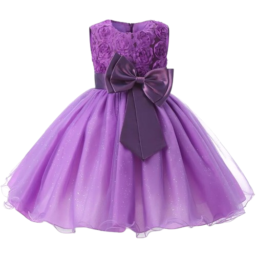Wyjątkowa sukienka dla małych dam w pięknym fioletowym kolorze, która zachwyci każdego swoim wyjątkowym designem. Górna część sukienki ozdobiona jest delikatnymi różyczkami wykonanymi z tego samego materiału, tworząc piękny i dziewczęcy wygląd bez rękawów. Spódnica z tiulu z subtelnym brokatem dodaje sukience magicznego blasku, który pięknie odbija światło podczas ruchu. Duża satynowa kokarda w pasie stanowi główny punkt sukienki, podkreślając talię i dodając elegancji całej stylizacji. |