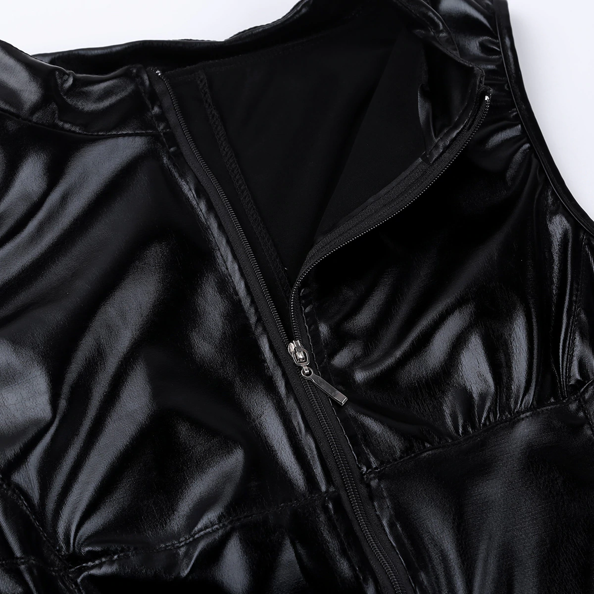 Sukienka mini z dekoltem, ze stringamiErotyczna sukienka z połyskującego materiału to idealny wybór dla pewnych siebie kobiet, które lubią przyciągać spojrzenia i czuć się wyjątkowo. Jej dopasowany krój i głęboki dekolt sprawiają, że każda chwila staje się bardziej pikantna i zmysłowa. Sukienka świetnie sprawdzi się podczas romantycznych wieczorów, imprez tematycznych czy sesji zdjęciowych. To propozycja dla kobiet, które wiedzą, jak zrobić wrażenie! Połyskujący materiał świetnie odbija światło, zapinana jest od przodu, na wysokości tułowia. Posiada bardzo głęboki dekolt i falbanki. Dlaczego warto kupić?