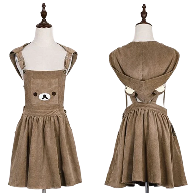 Sukienka ogrodniczka, z kapturem, miś, styl kawaiiChcesz dodać swojej garderobie uroku w japońskim stylu kawaii? Ta sukienka Harajuku w formie ogrodniczki z motywem misia to idealny wybór dla osób, które uwielbiają modę pełną słodyczy, luzu i kreatywności! Wyjątkowy design z kieszonką w kształcie pyszczka misia i uroczym kapturem z uszkami sprawi, że wyróżnisz się w każdej sytuacji – od spaceru po mieście po spotkania z przyjaciółmi czy konwenty anime. Średniej długości sukienka ma krój ogrodniczek. Dzięki regulowanym szelkom łatwiej dopasować je do sylwetki. Wykonana z bawełny, ma wzór misia. Posiada też kaptur, który ma doszyte uszy pasujące do wzoru. Dlaczego warto kupić?