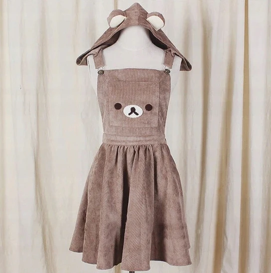 Sukienka ogrodniczka, z kapturem, miś, styl kawaii